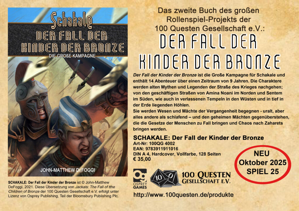 … und als Neuheit haben wir die Große Kampagne für unser Bronzezeitliches Fantasy-Rollenspiel SCHAKALE dabei: